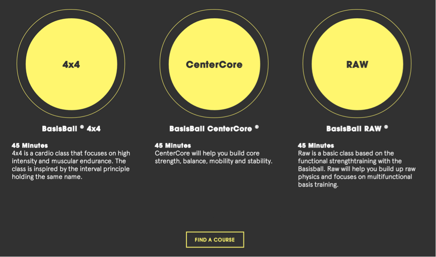 Back to start is a company with a training concept called “BasisBall”. This concept is conveyed through their website and presented in two different ways. The first is for registered users (“trainers”) and requires an account to access. This type of account is granted to personal trainers at fitness centres that have joined the program. Through the account they can subscribe to 3 different types of programs, which will allow them to teach the respective program at their fitness centre.