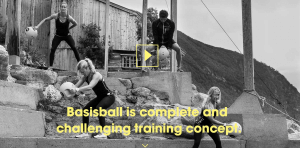 Right: Iterated header image with play button for video and rewritten text. “BasisBall” is added to clarify that this is the concept thats being presented.
